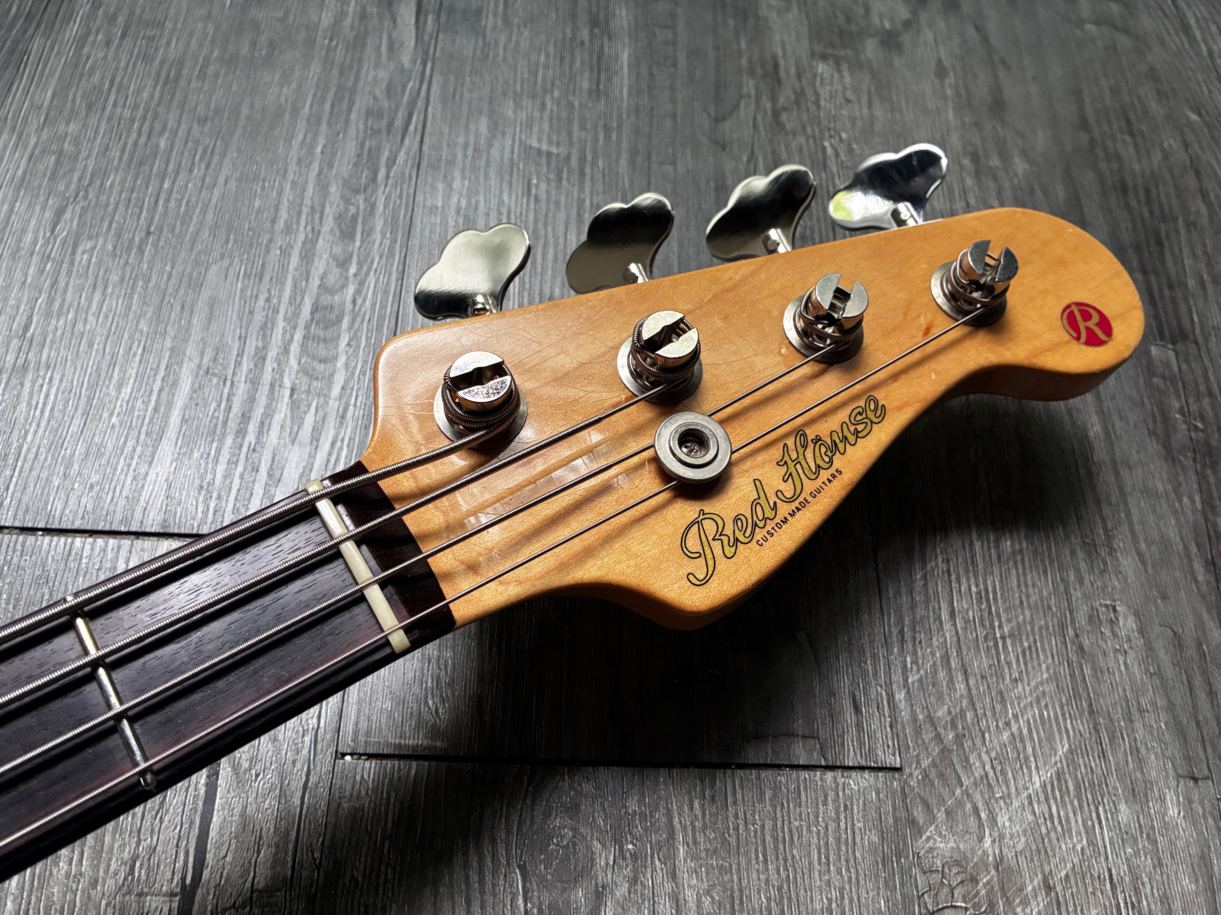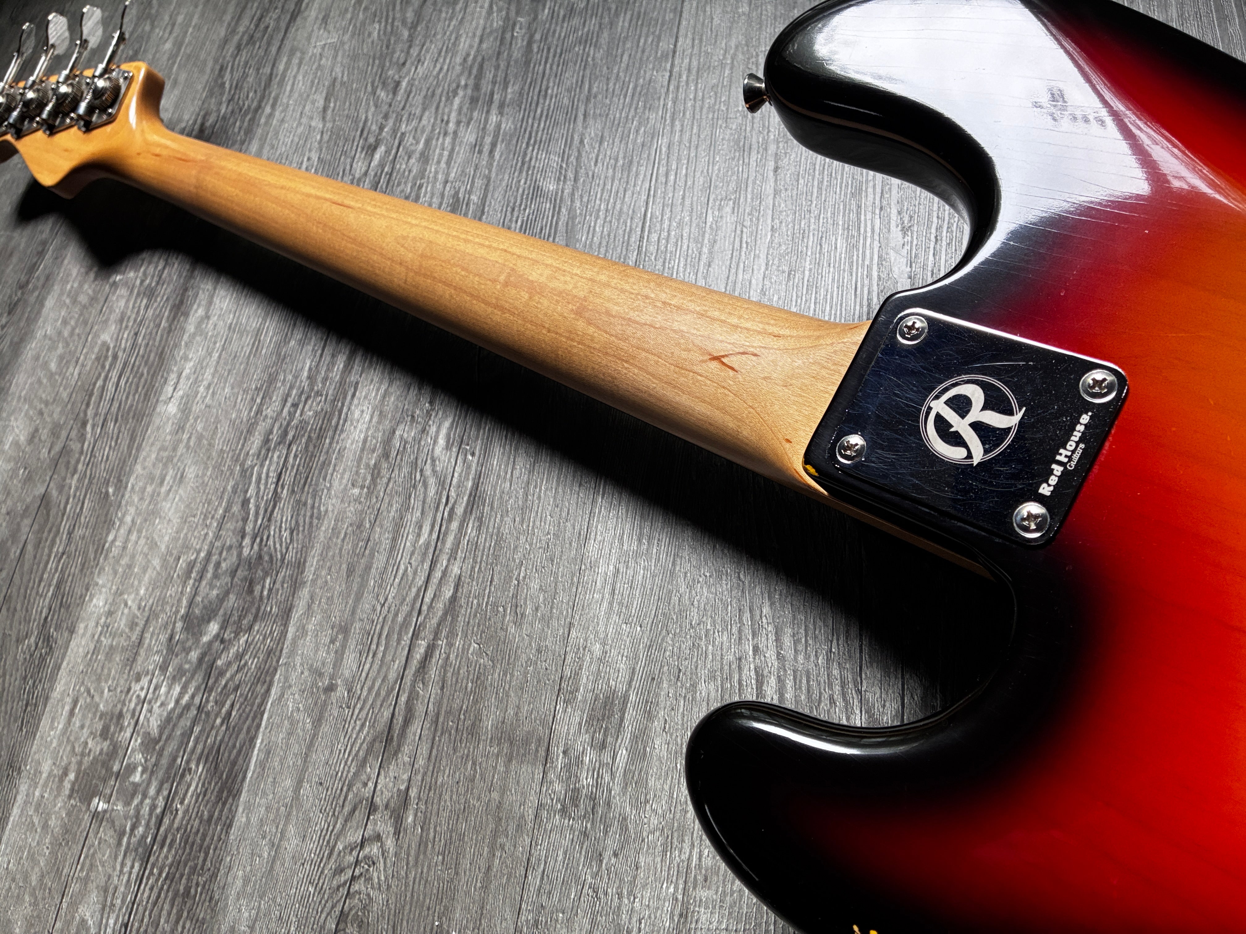 本機は、Red House Guitarsがブランド立ち上げ初期にカスタムオーダーで製作した希少な個体(Pot DATA 2020年製)。オーソドックスな3トーンサンバーストにローズ指板、さらに絶妙なレリック加工が施され、ヴィンテージさながらの雰囲気をまとっています。